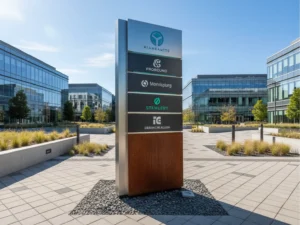 Valorisez vos bâtiments avec une signalétique sur-mesure alliant design moderne et lisibilité optimale, pour une image professionnelle qui dure dans le temps.